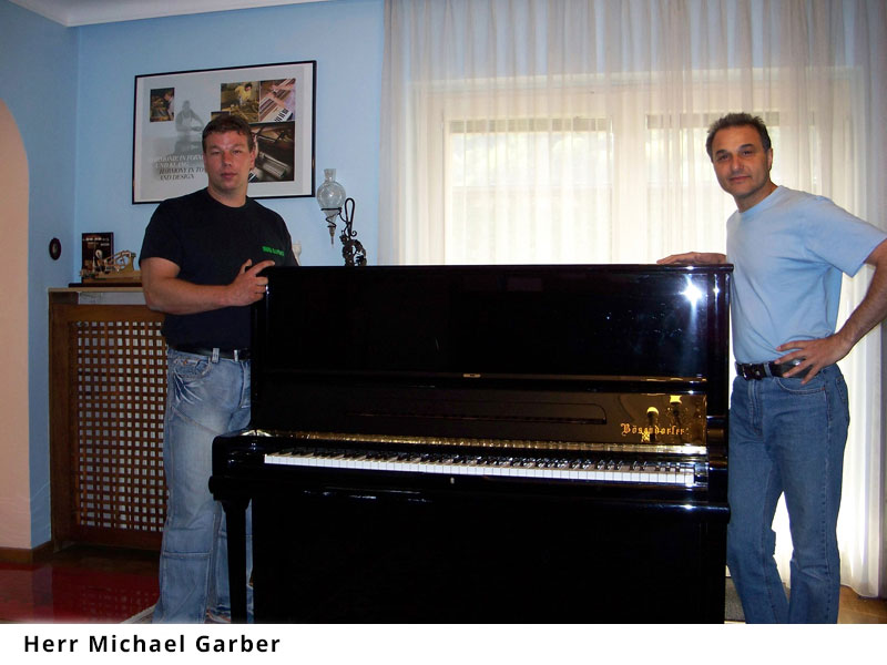 Klavierbaumeister Kamran Vahdat, zu dem wir auf Empfehlung Kontakt aufnahmen, meinte, dass er das Klavier zwar aufwändig restaurieren könnte, dadurch der Klang aber auch kaum besser werden würde. Stattdessen kaufte er für uns ein sehr gutes gebrauchtes Klavier und baute das komplette Innenleben mit hohem Aufwand in mein Klavier ein. So sieht das Klavier aus wie bisher, hat aber durch die Anpassung einen hervorragenden Klang und eine wunderbare Spielart erhalten. Das Spielen macht damit wieder richtig Freude".